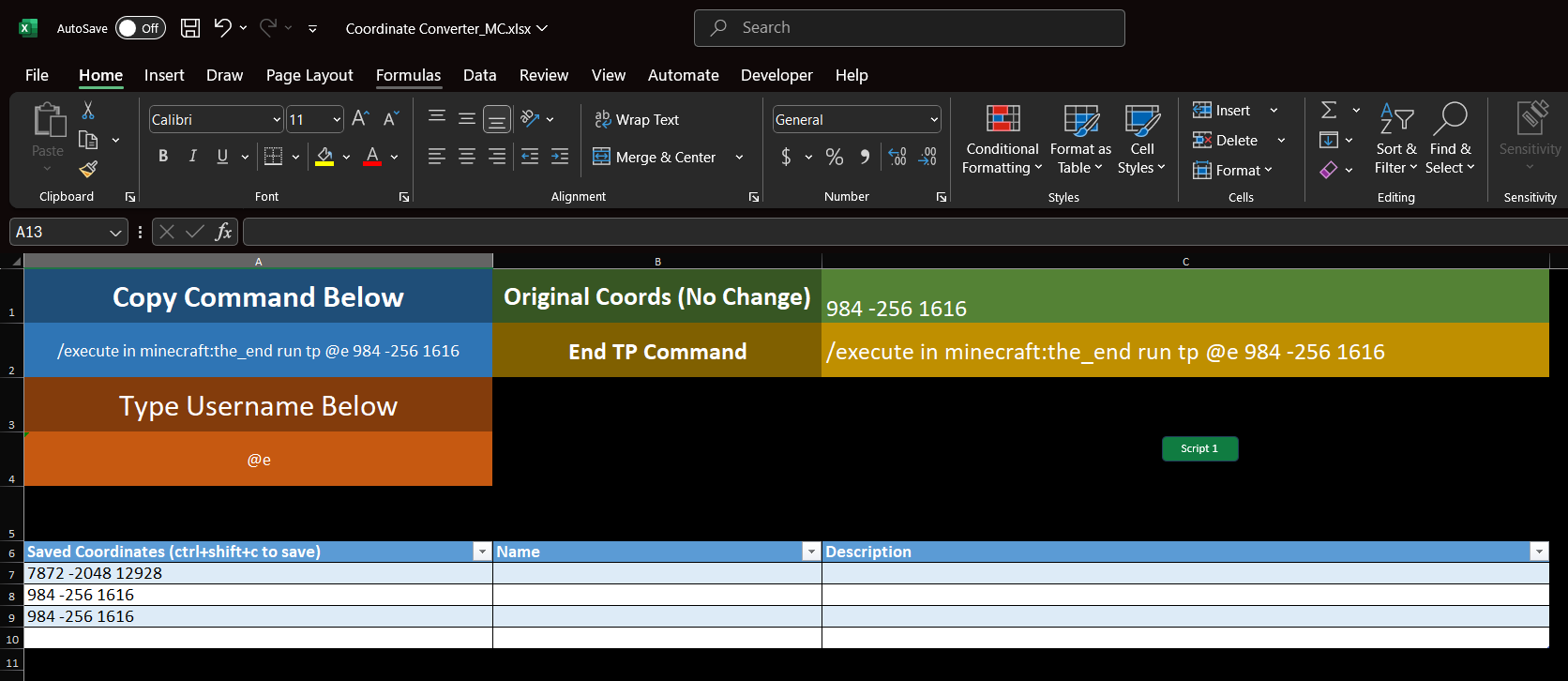 Minecraft Coordinate Converter